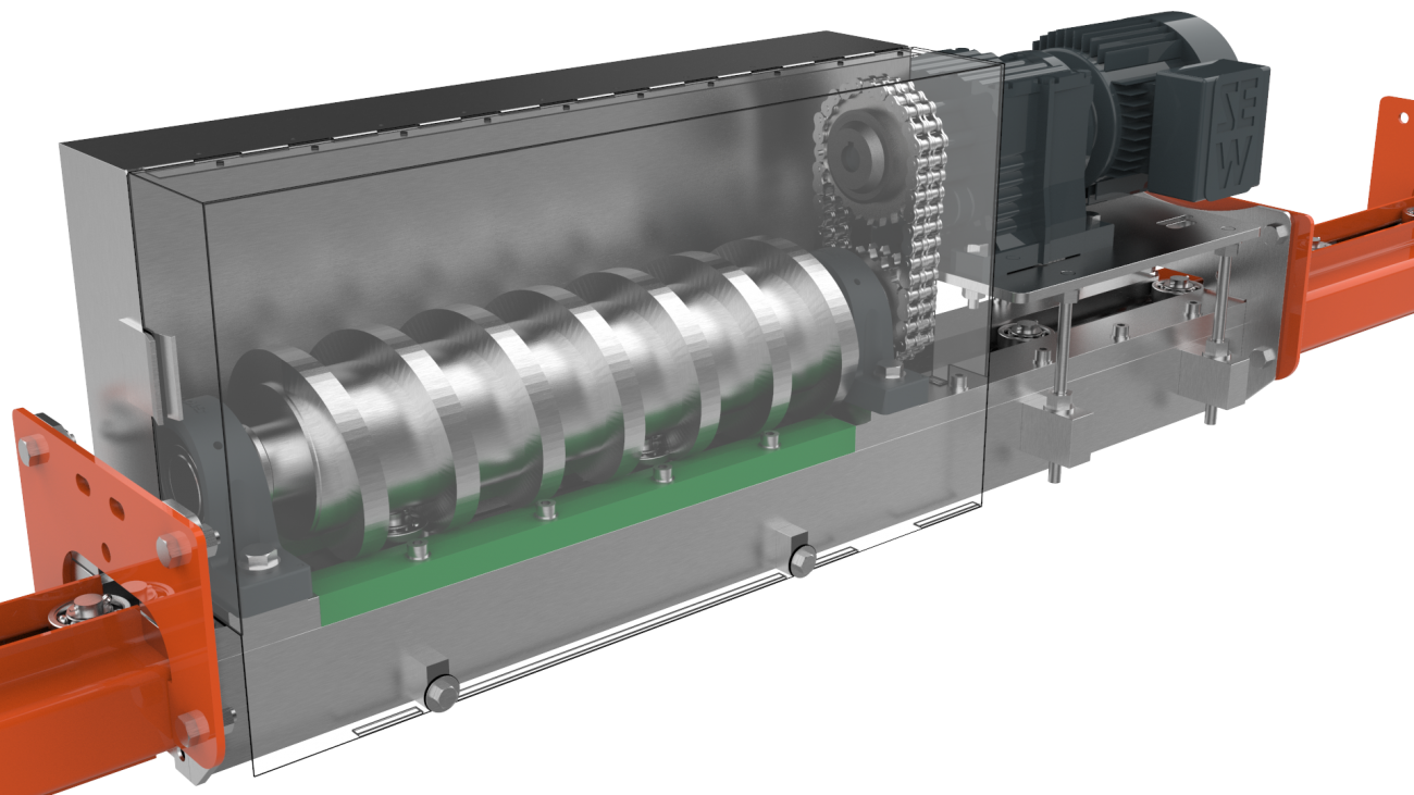 Das D8 Fördersystem ist unser ältestes und beliebtestes motorgetriebenes Fördersystem mit einer Förderkette, die sich innerhalb eines Schienensystems bewegt. Das Schleppketten- oder ein Wurmantrieb greift in die Förderkette ein und bewegt sie vorwärts. Eine (optionale) automatische Schmierstation kann installiert werden, um sicherzustellen, dass die Gelenke der Förderkette während des Betriebs regelmäßig geschmiert werden.