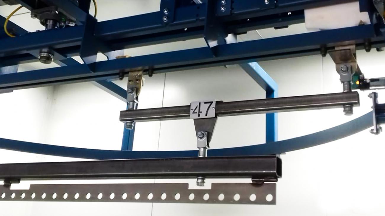I carrelli di trasporto anteriori e posteriori sono di solito collegati tra loro con una "barra di carico". Ad ogni barra di carico può essere fissato un portaprodotto sviluppato appositamente per prodotti specifici, trasportando così il prodotto attraverso l'officina.